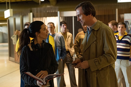 Franziska Stünkel, Lars Eidinger (front, left to right) while shooting "Nahschuss" (2019)
