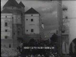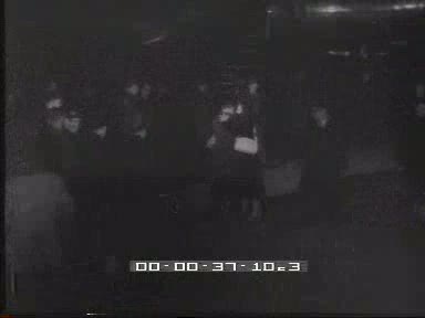 1 - parenti ed amici in un campo sventolano fazzoletti all'arrivo in pulmann dei prigionieri di guerra