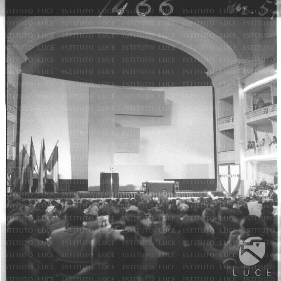 Altri titoli: Il palco vuoto del teatro Adriano colto dal fondo della sala; campo lungo