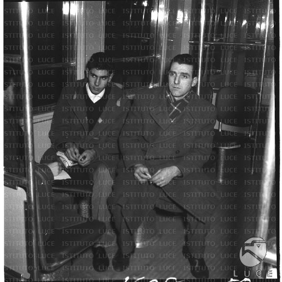 Due uomini seduti nei vagoni della metropolitana. Totale