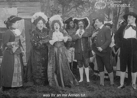 Tonbild zur Arie "Mag der Himmel dir vergeben" aus dem dritten Akt von Friedrich von Flotows Oper "Martha". Tonbild ist eine Bezeichnung für frühe Kinofilme mit Synchronton (aufgezeichnet und abgesp...