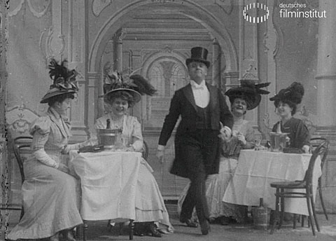 Tonbild zu "Die Herzen der Frau'n von Berlin" aus der 1907 Metropol-Theater Revue "Das muss man seh'n!". Der Hauptdarsteller, vermutlich Emil Justitz, agiert playback zu einem Lied, das die Vorzüge d...