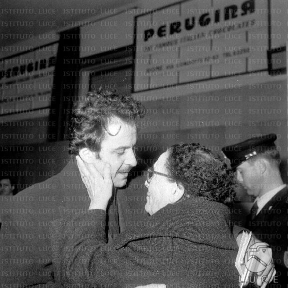 Weitere Titel: Ciampino Domenico Modugno saluta la madre all'interno dell'aeroporto di Ciampino