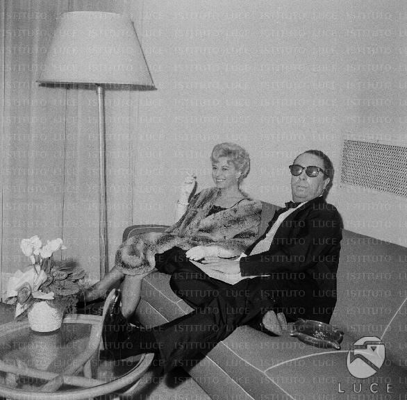 Kitas pavadinimas (ai): Roma Giulietta Masina e Brunello Rondi seduti su un divano in occasione della prima del film "La dolce vita"